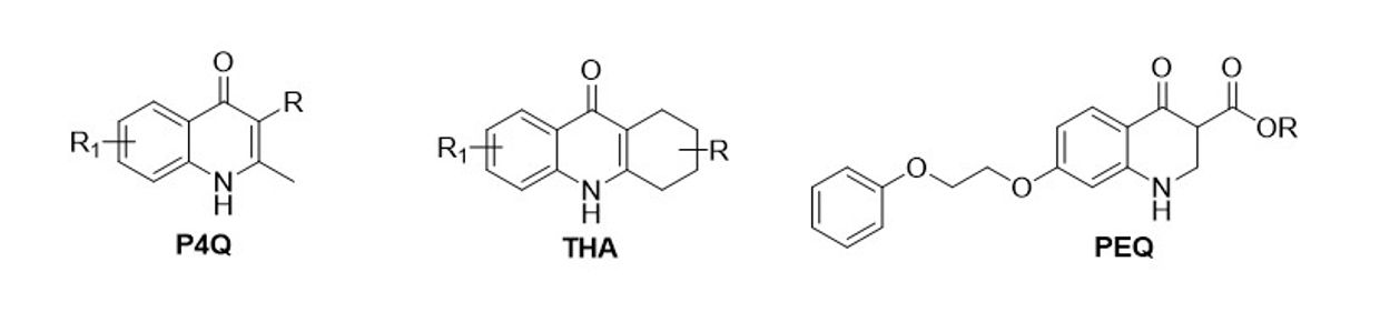 Our hit-to-lead optimization efforts lead to orally bioavailable 4(1H)-quinolones with antimalarial activity against erythrocytic and exoerythrocytic stages. Further refinement has directed our current synthesis efforts towards producing orally bioavailable 1,2,3,4-tetrahydroacridin-9(10H)-one (THA) analogs, 3-alkyl- or 3-phenyl-4(1H)-quinolone (P4Q) analogs, and 7-(2-phenoxyethoxy)-4(1H)-quinolone (PEQ) analogs.