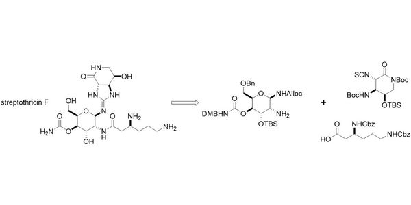Streptothricin F was discovered over 70 years ago by Waksman and Woodruff and displays an impressive activity spectrum against otherwise resistant Gram-negative pathogens. Initial concerns around toxicities and the availability of alternative antibiotics precluded its development. There is one reported streptothricin F total synthesis published in 1982 by Kusumoto. This original synthesis is largely linear and does not lend its hand to medicinal chemistry approaches. We are interested in demonstrating a novel total synthesis that is highly tunable for medicinal chemistry to generate several derivatives. Through a divergent total synthetic approach, we will pursue SAR exploration of the three primary molecular constituents of this natural product.